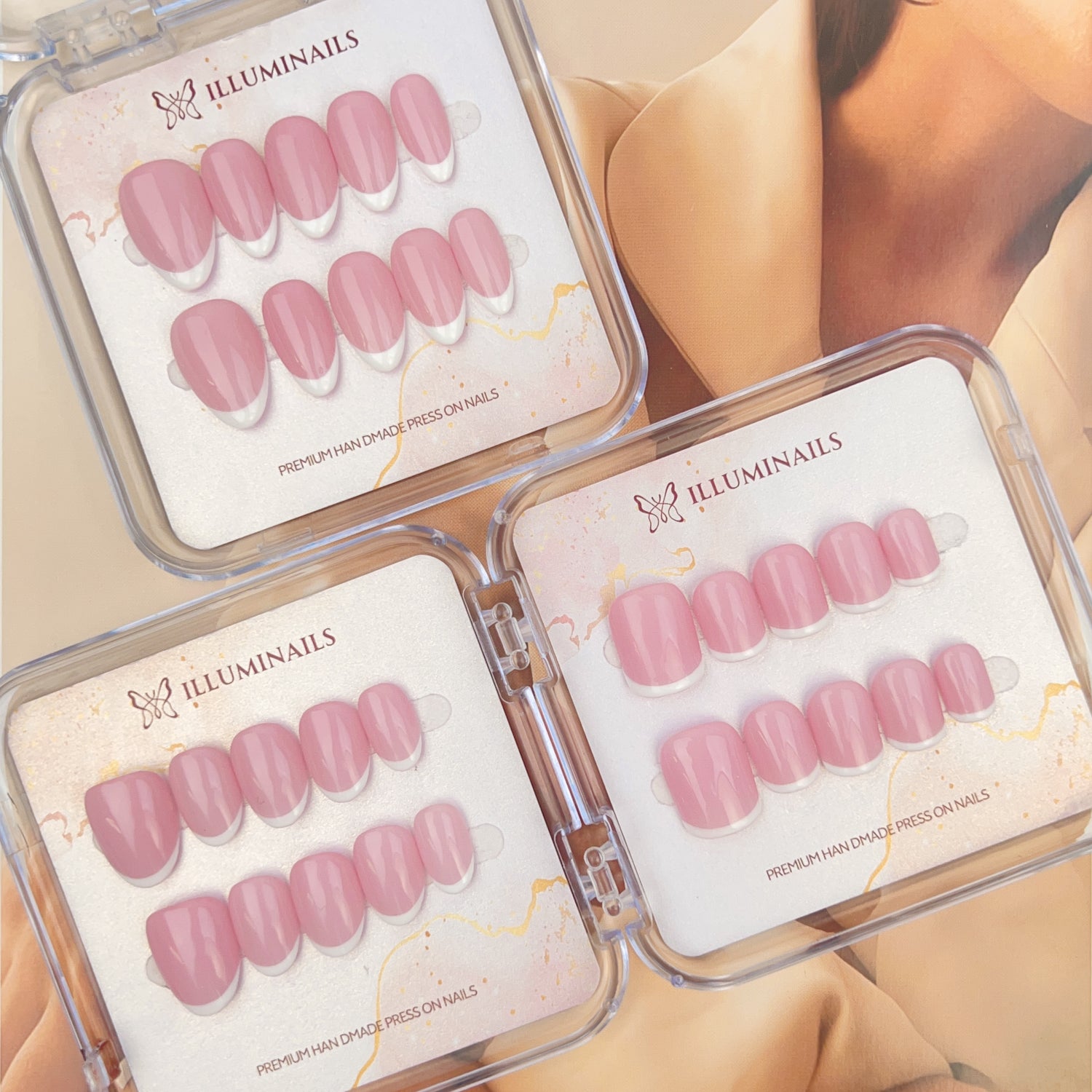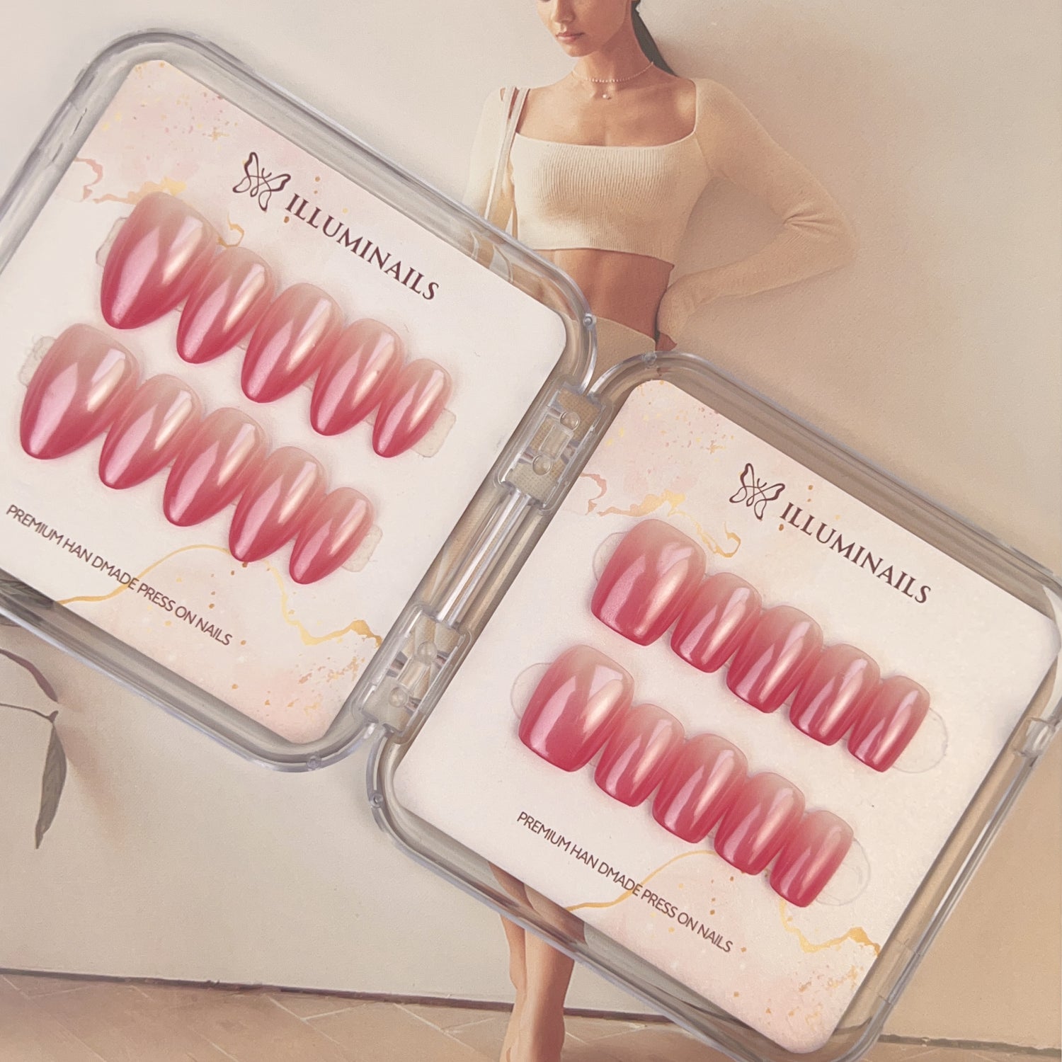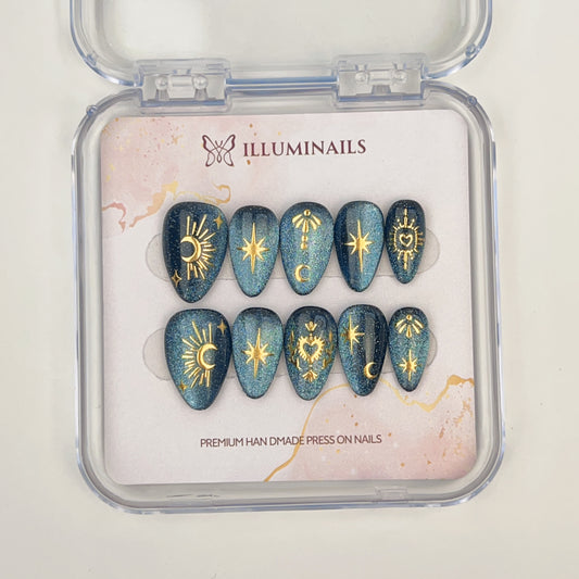 Illuminails press-on nails are meticulously handcrafted with premium materials, giving you a durable, luxurious look that stands out. Unlike mass-produced press-ons, our nails are designed to fit comfortably and last, combining the quality of salon nails with the convenience of DIY beauty.