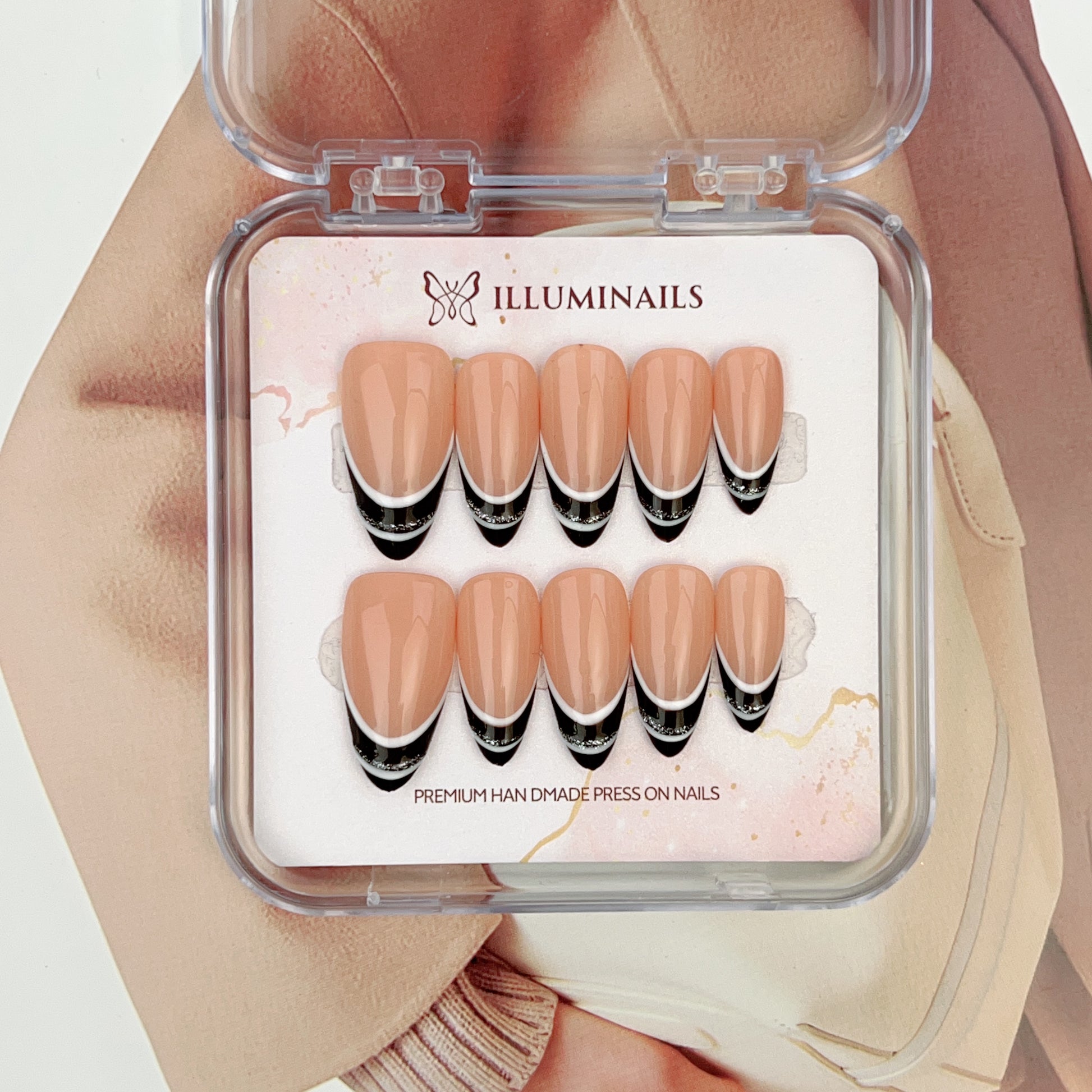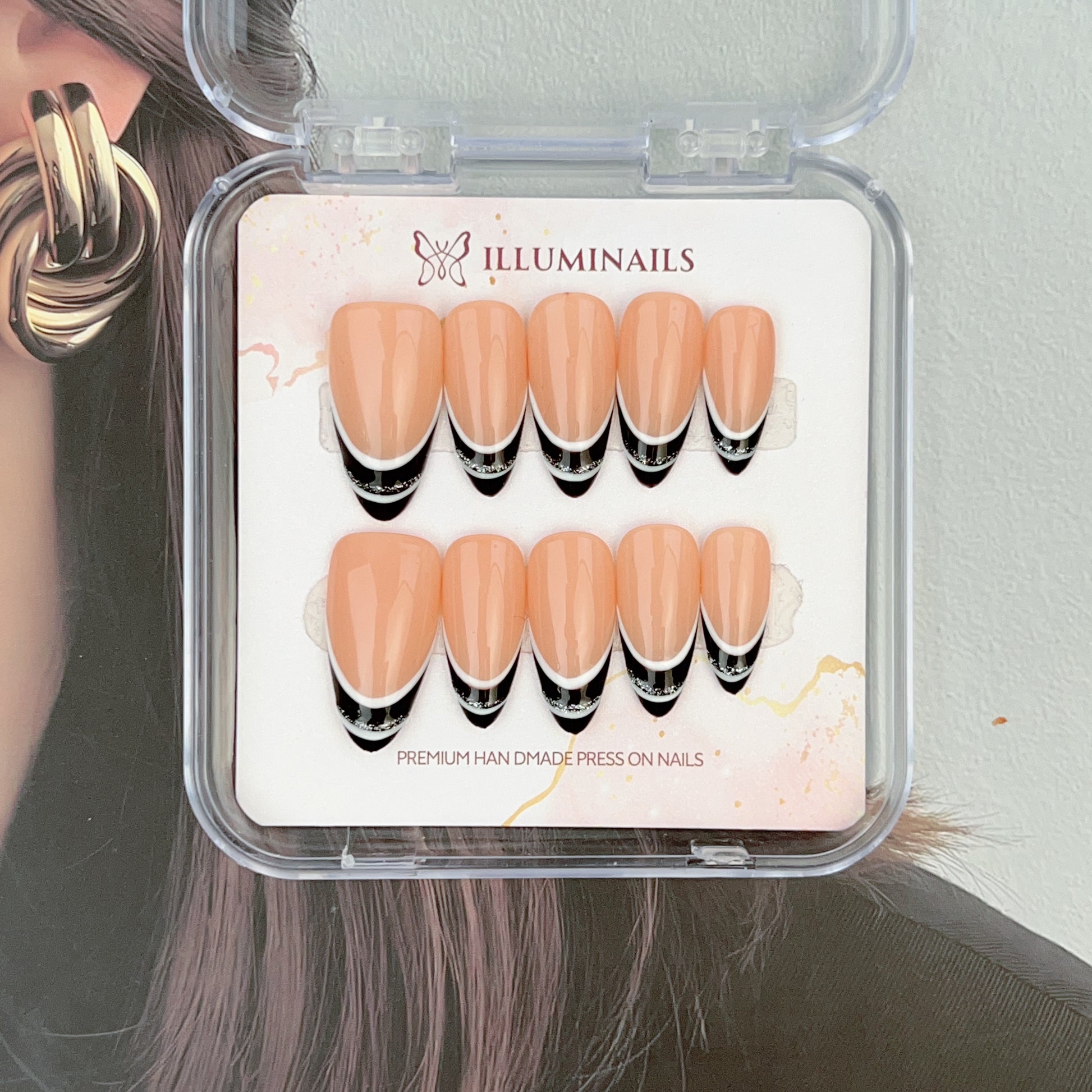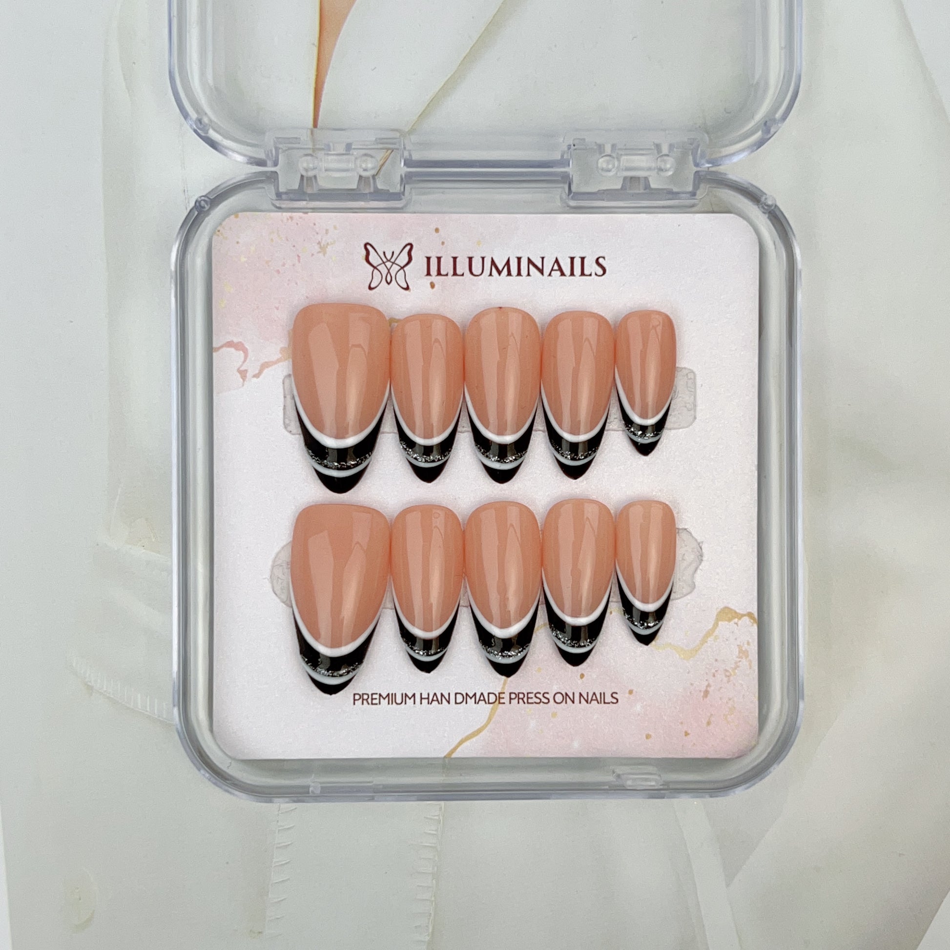 - Handcrafted press-on nails made with premium materials