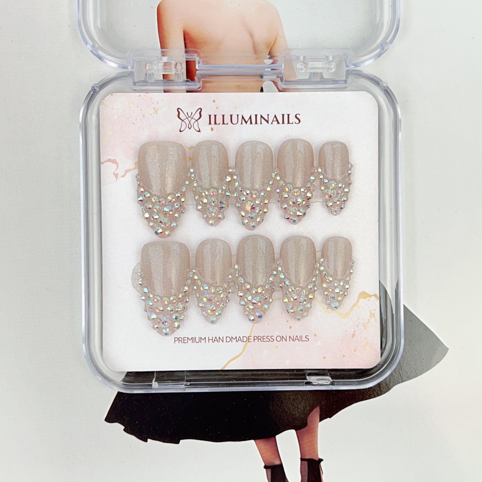 - Handcrafted press-on nails with premium materials
