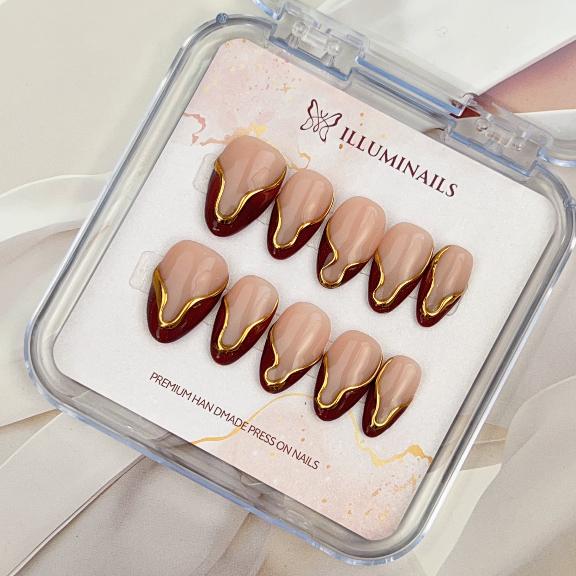 - Handcrafted press-on nails made with premium materials