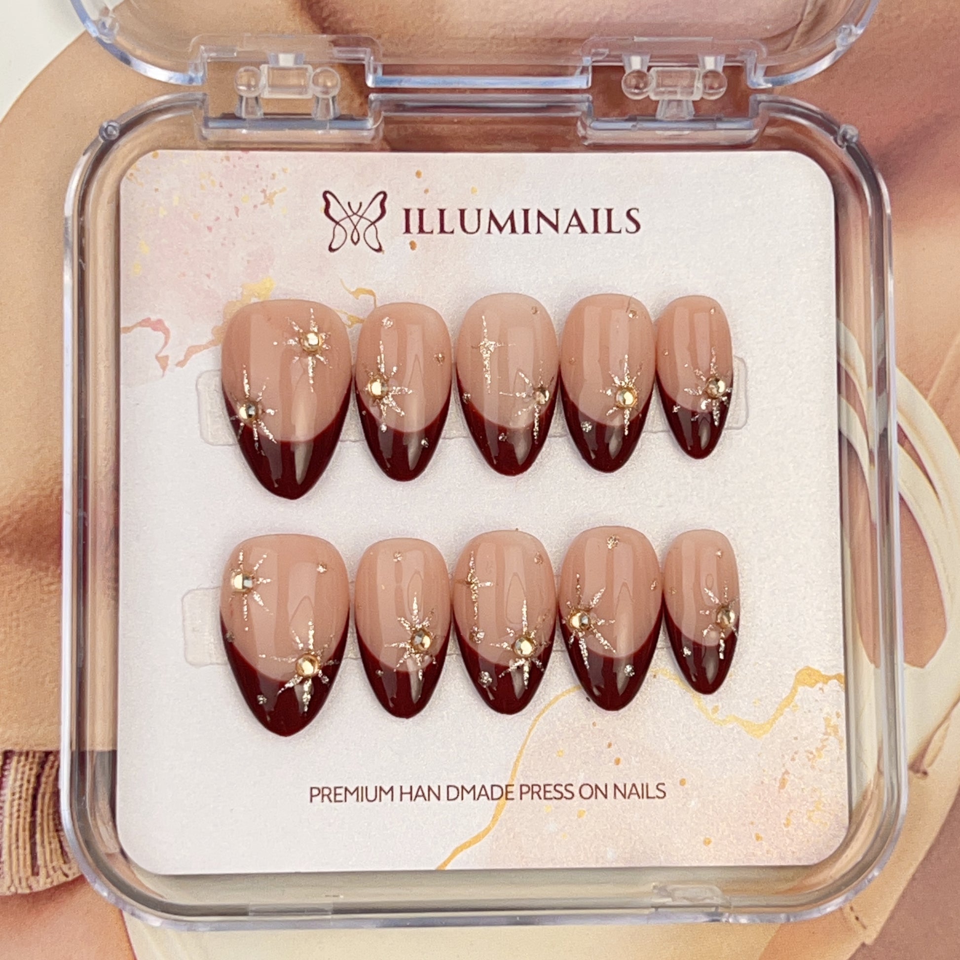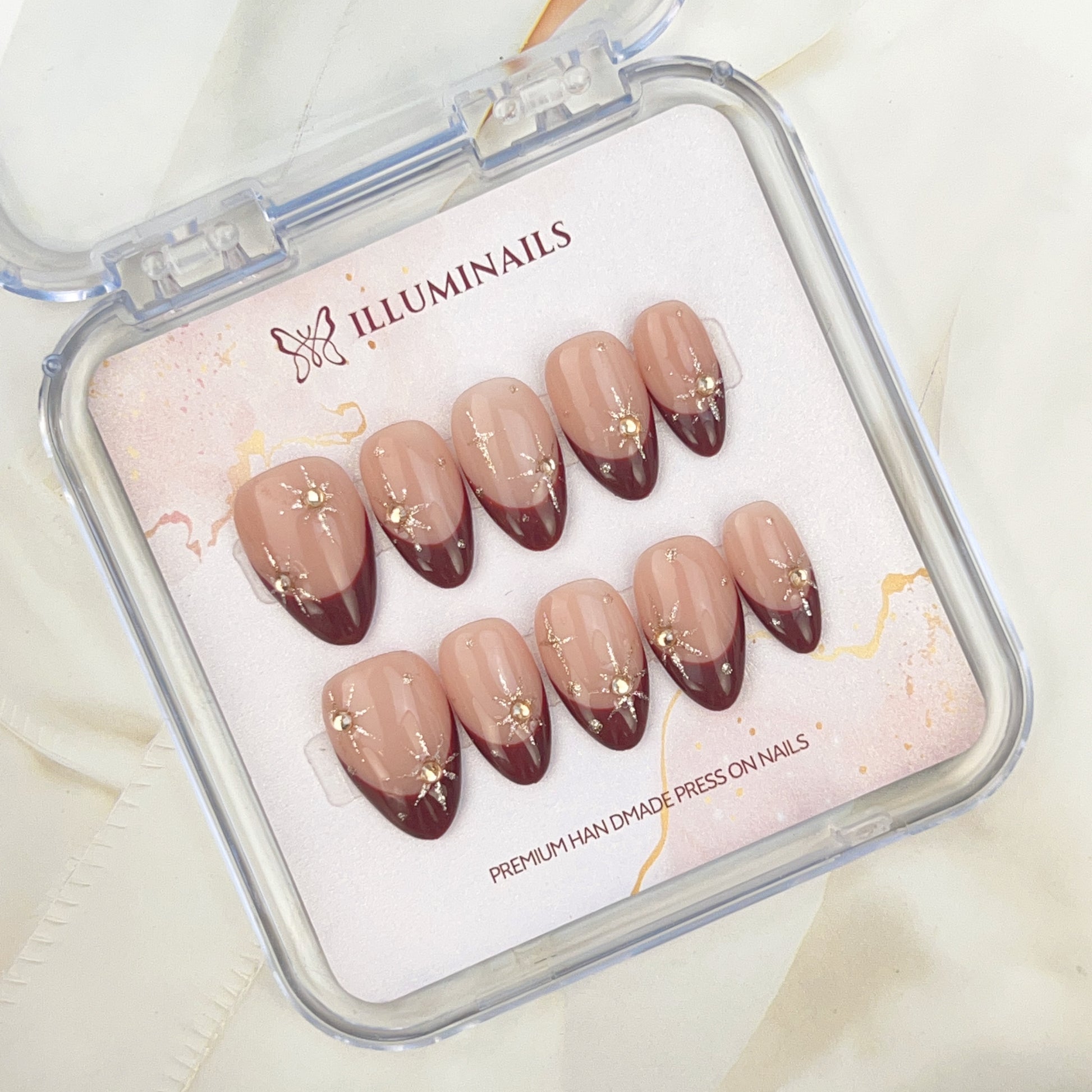 - Handcrafted press-on nails made with premium materials