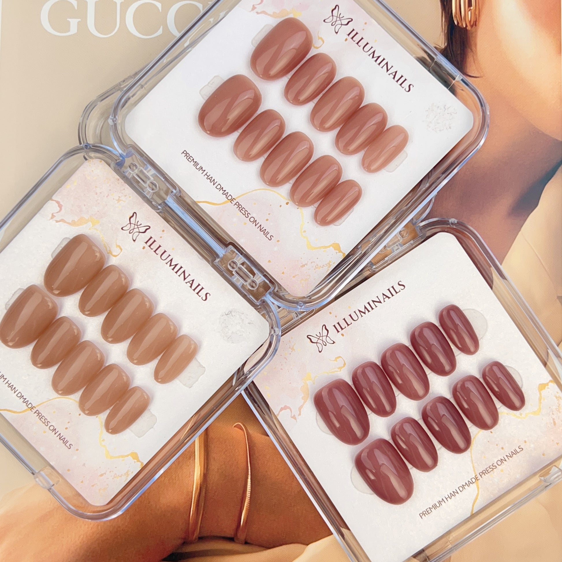 - Handcrafted press-on nails made with premium materials