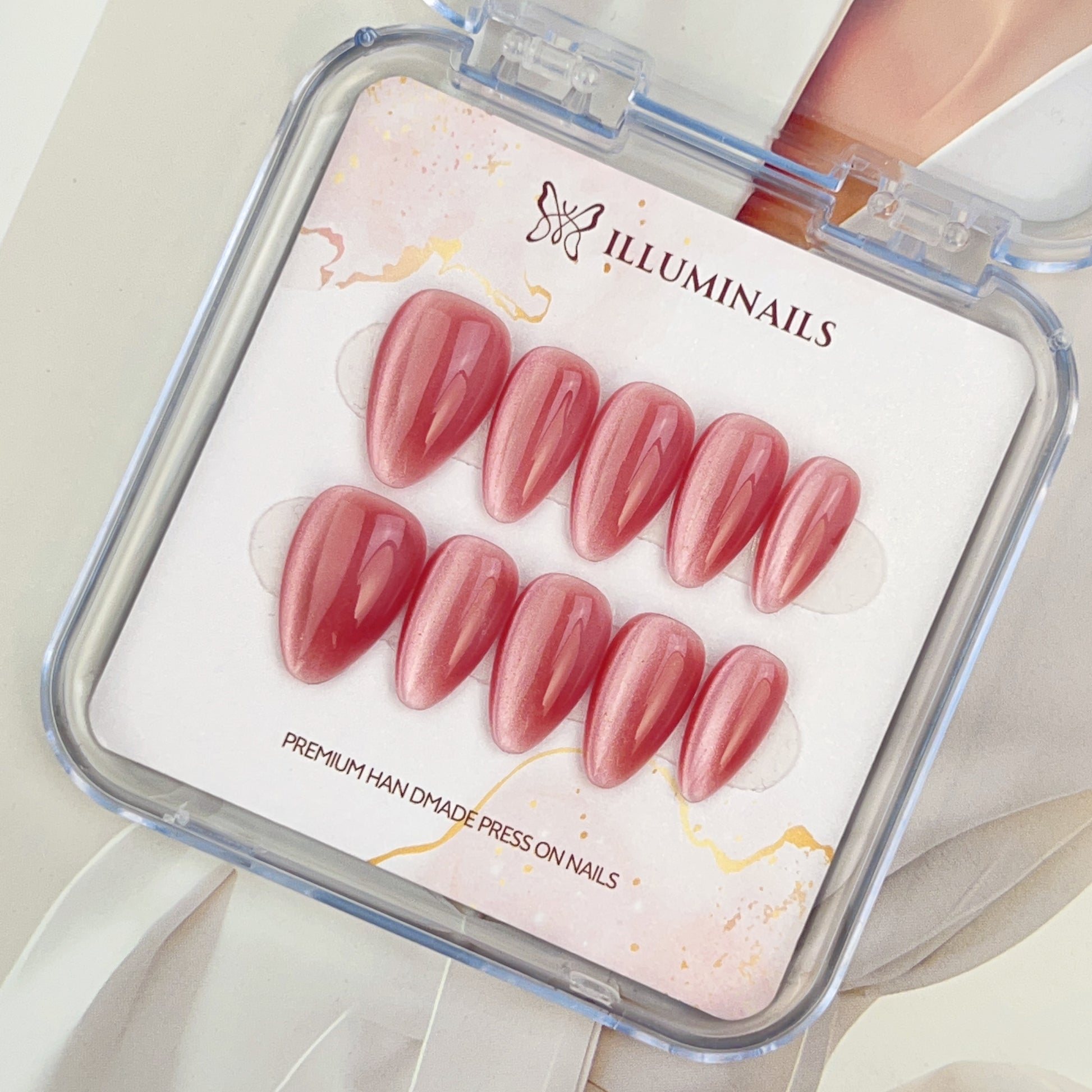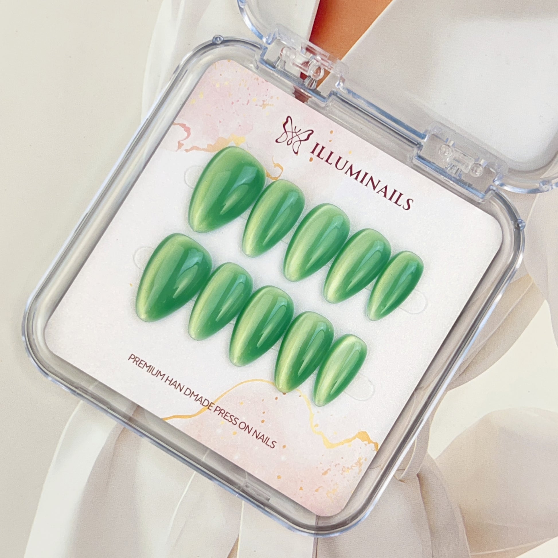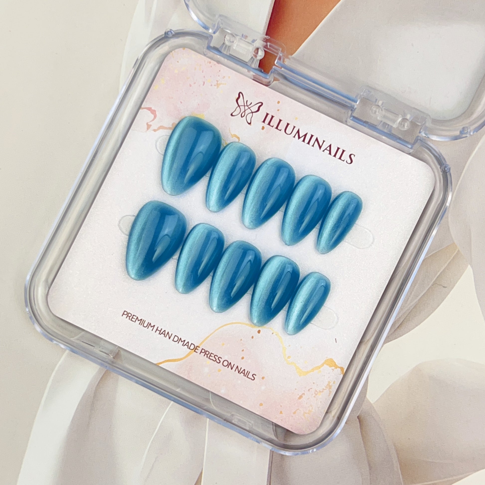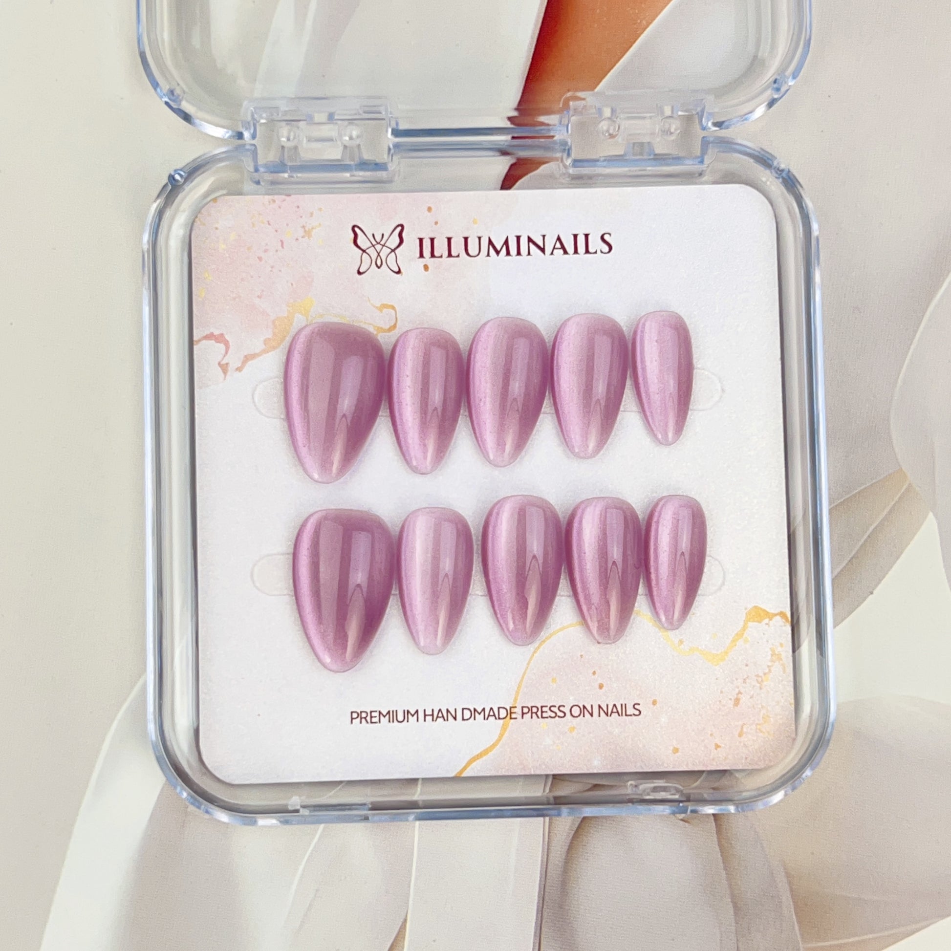 Spring Aura is a curated cat-eye press-on nail set inspired by the soft colours and gentle light of early spring. The collection features four seasonal shades — lavender, rose, green, and blue — each finished with a subtle cat-eye shimmer that moves naturally with the light.
