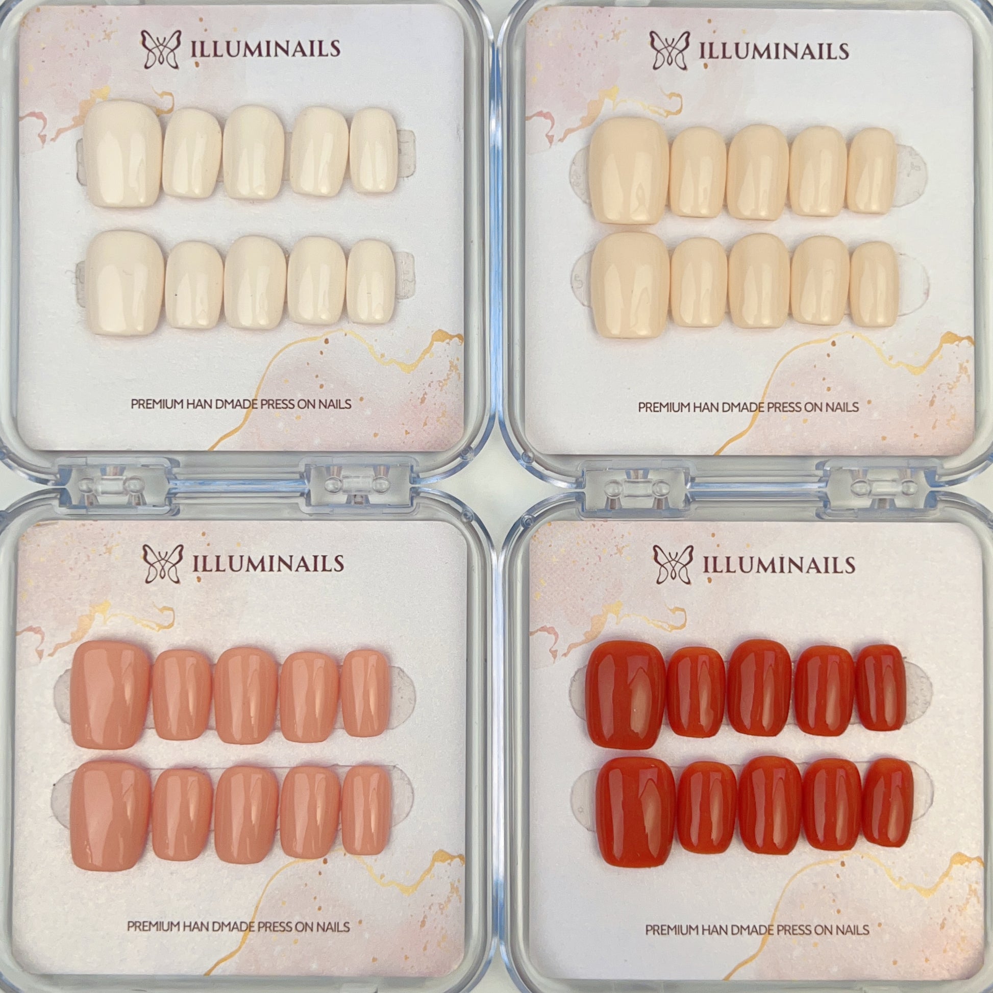 Apricot Glow is a solid-color press-on nail collection designed for effortless everyday wear.